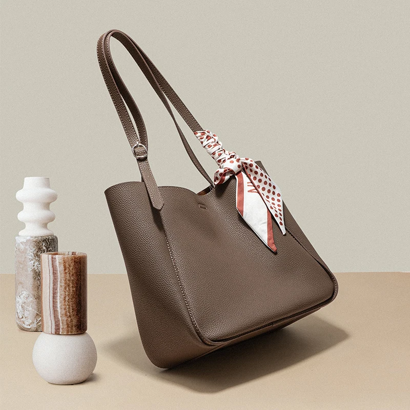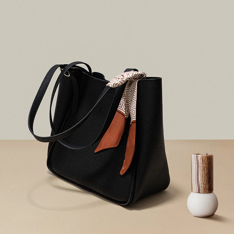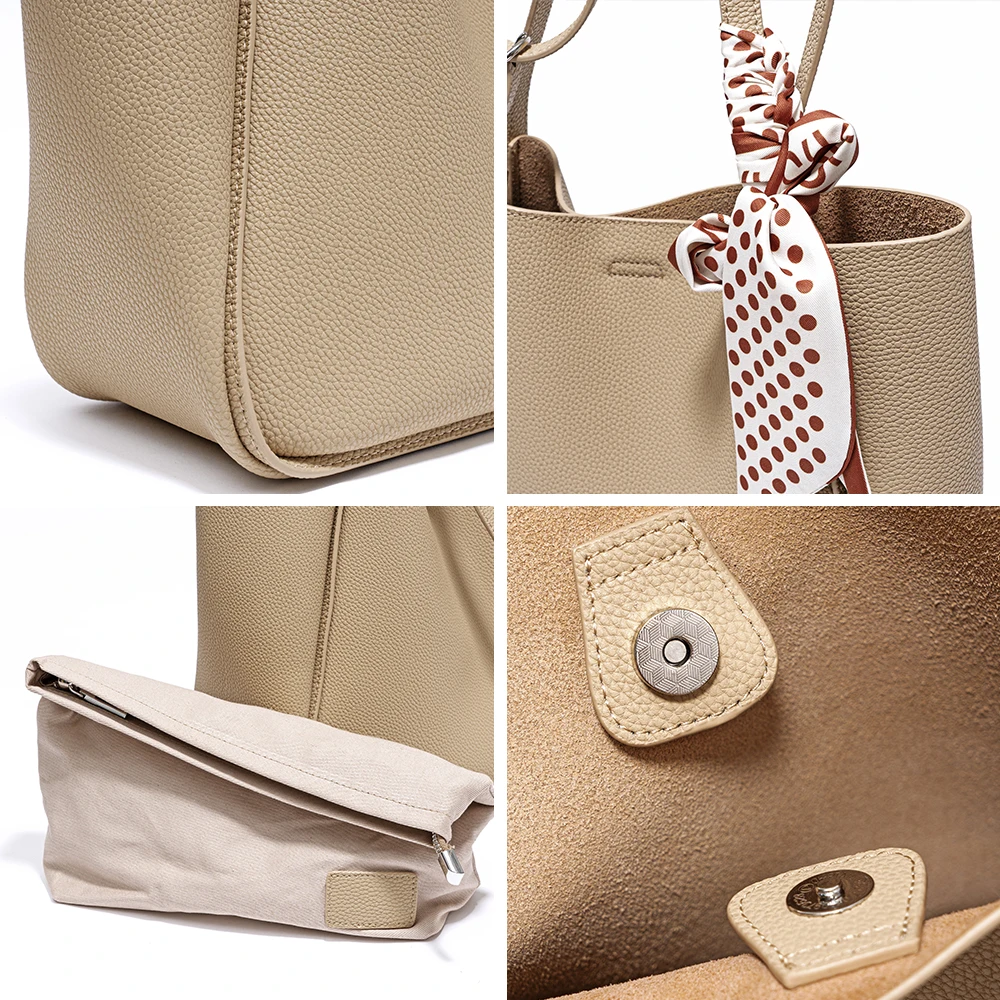 Retro Large Lichee Pattern Genuine Leather Women Handbags New Korean Version of Pure Color Tote Bags
